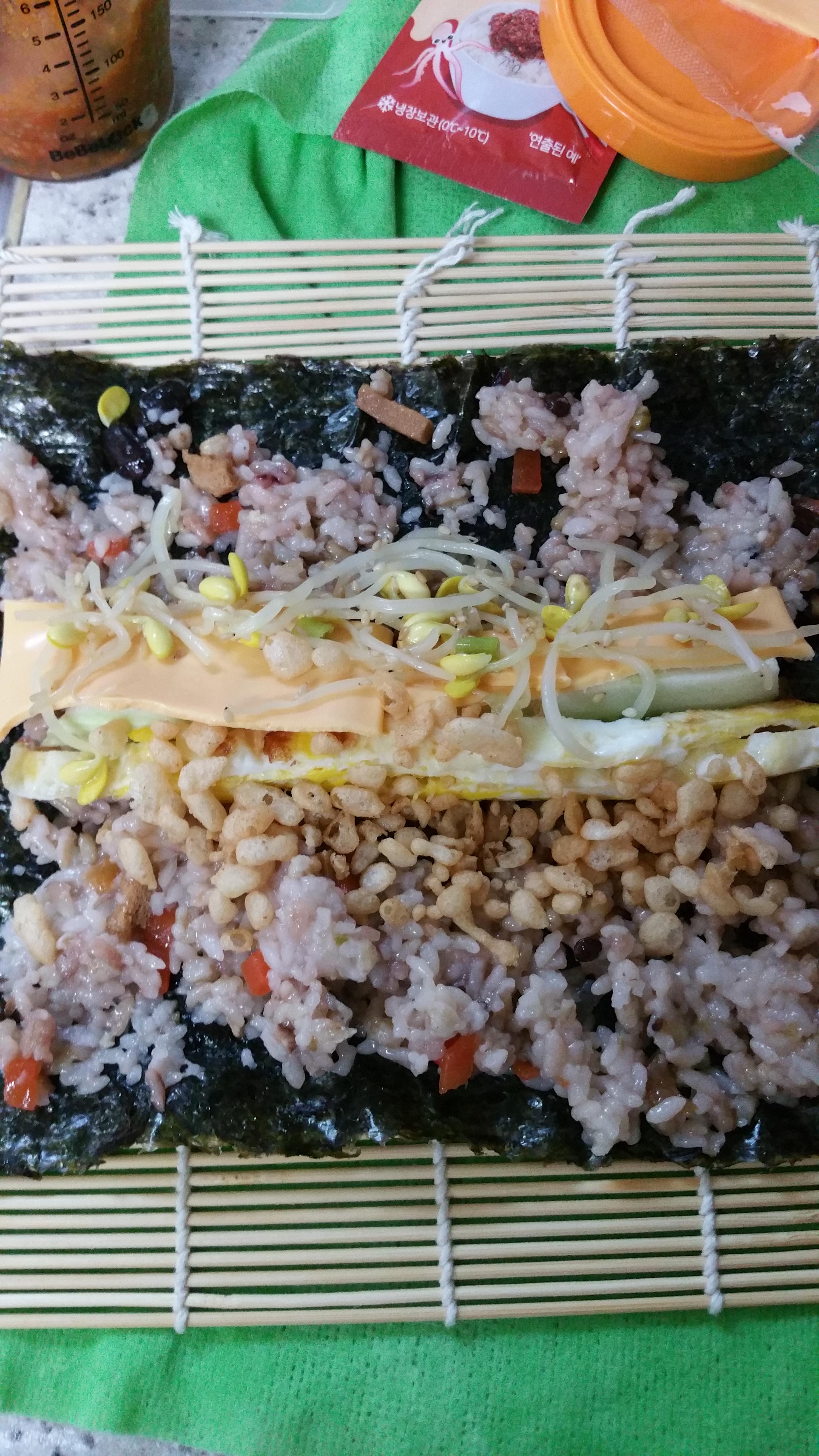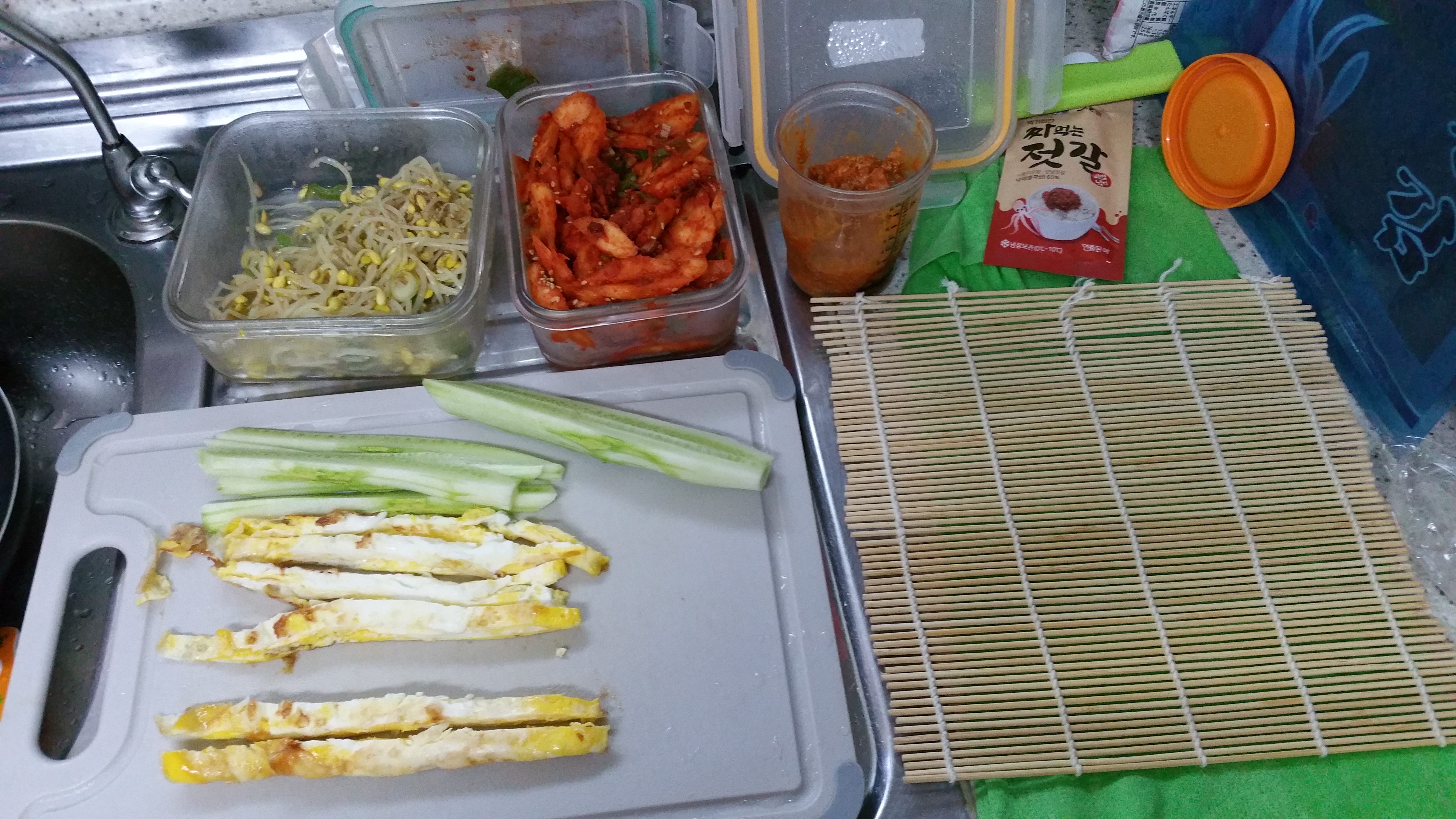 집에 남아있는 재료로 김밥을 만들었어요.^^
