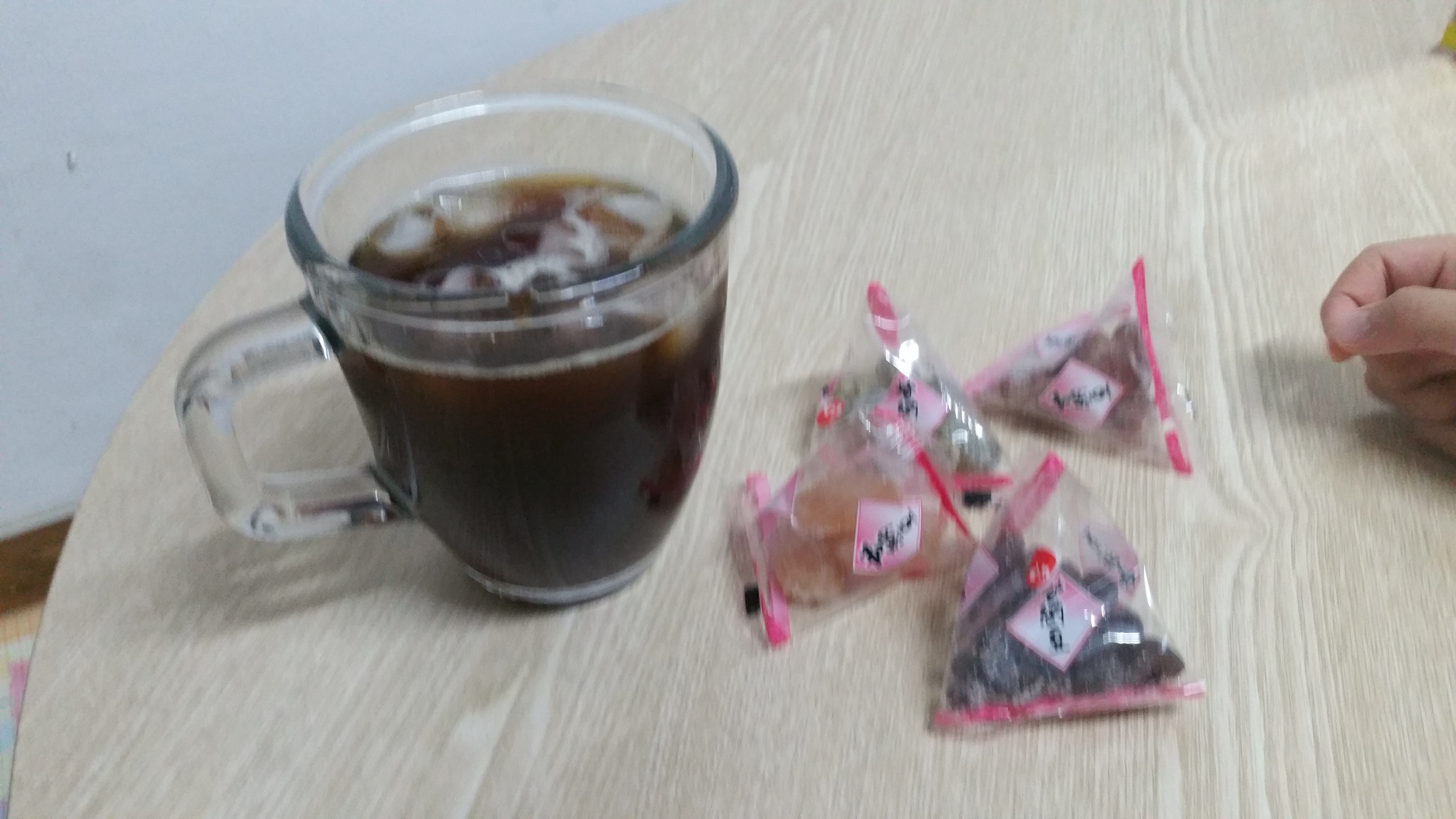 녹차는 준비가 안 되서 인스턴트 커피를 타서 먹어봤어요.