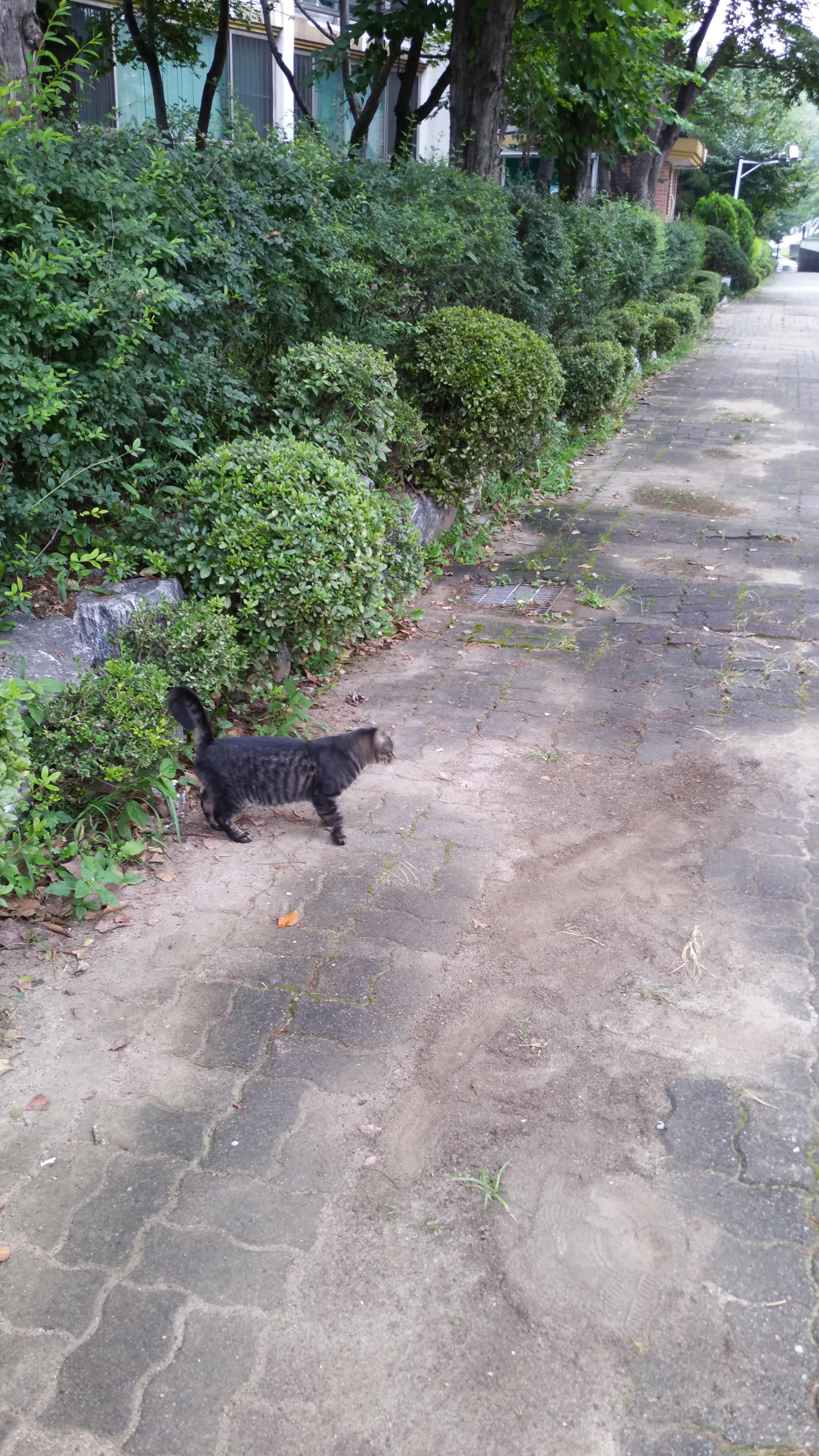오늘은 우리 아들 유치원 버스를 타고 나서 집 바로 앞에 고양이를 발견 했어요.^^