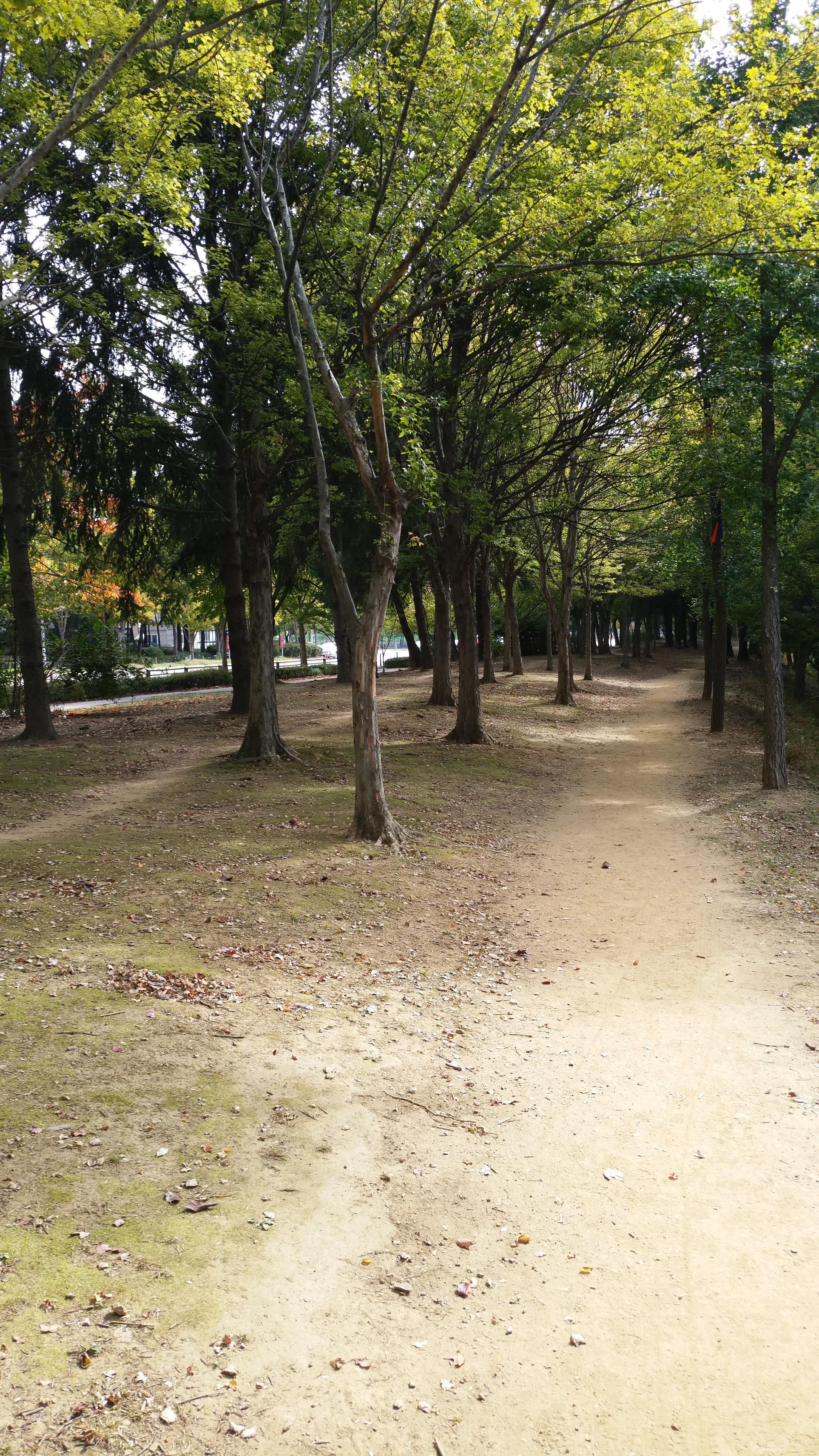 작은 길인데 사람은 많이 지나가지 않아요.왼쪽은 백석동 큰 차도가 있고 오른쪽은 장항동 논밭에 있어요.차소리가 좀 시끄럽지만 아름다운 나무길을 걸어가면 힐링이 됩니다.