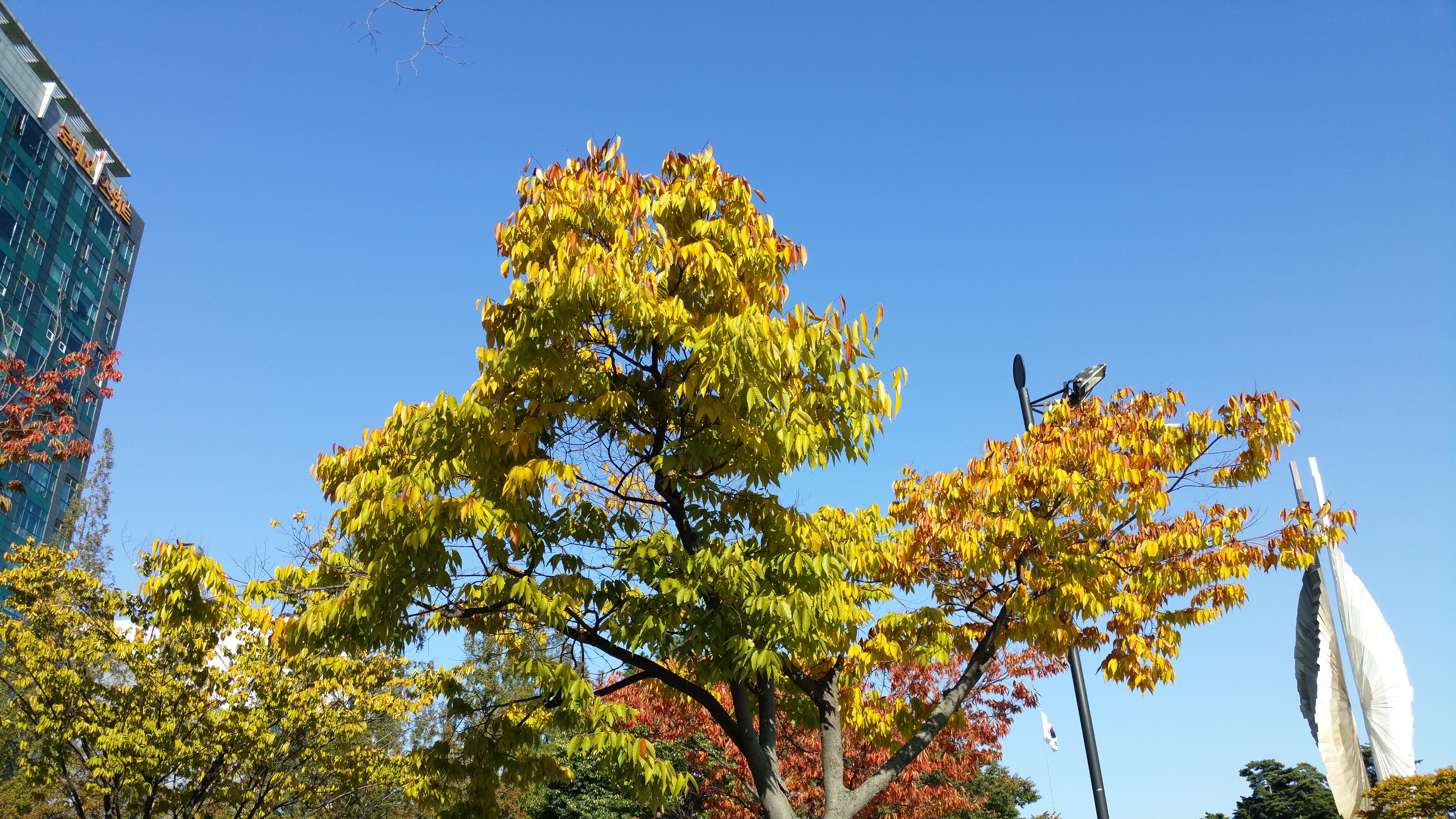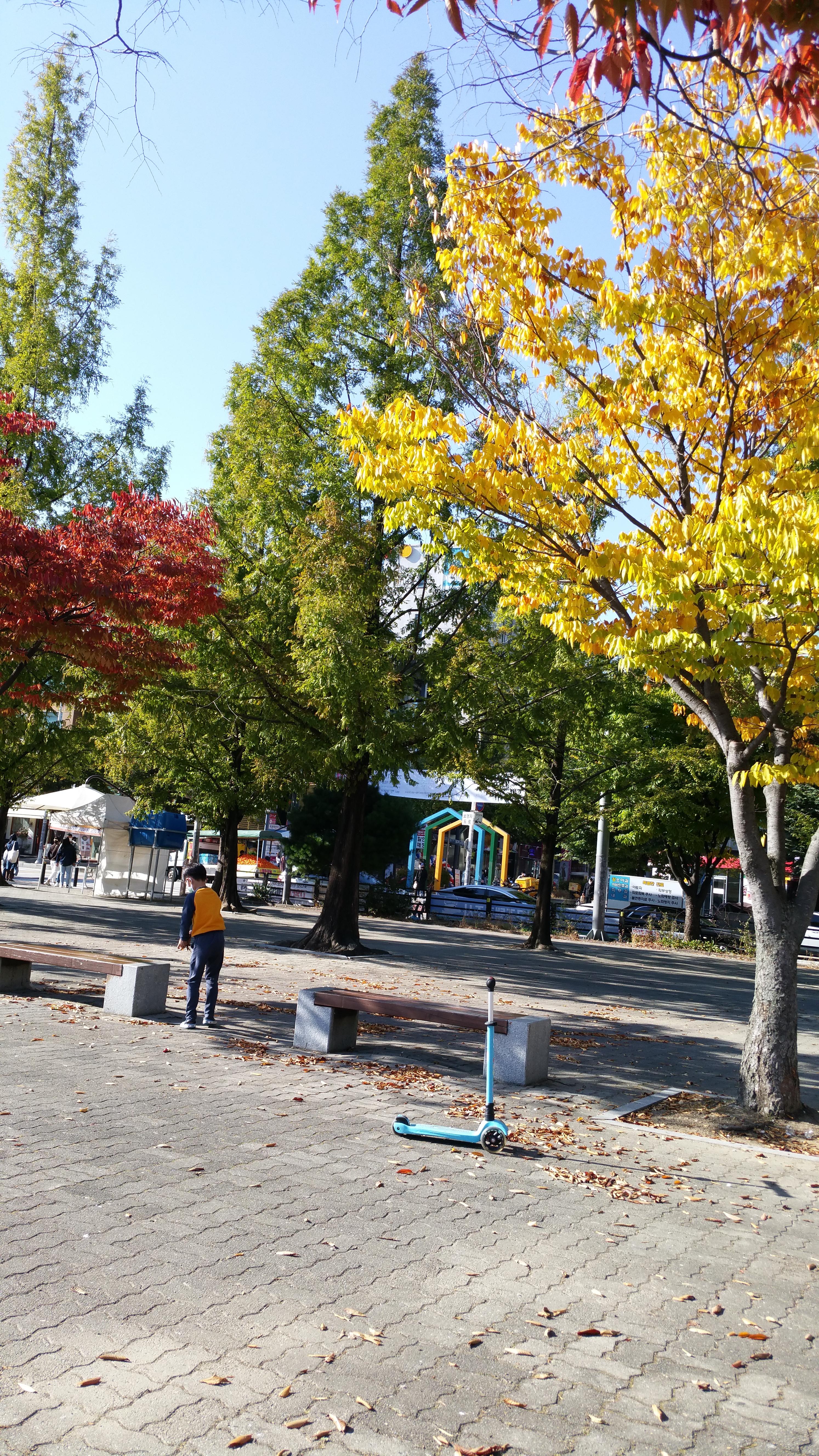 다음 사진은 일산 호수공원 근처 광장에서 찍은 단풍사진이에요.지난 주말에 가족 다 함께 중고서점에 가고 패스트푸드점에서 아이스크림을 사서 밖에서 먹었어요.